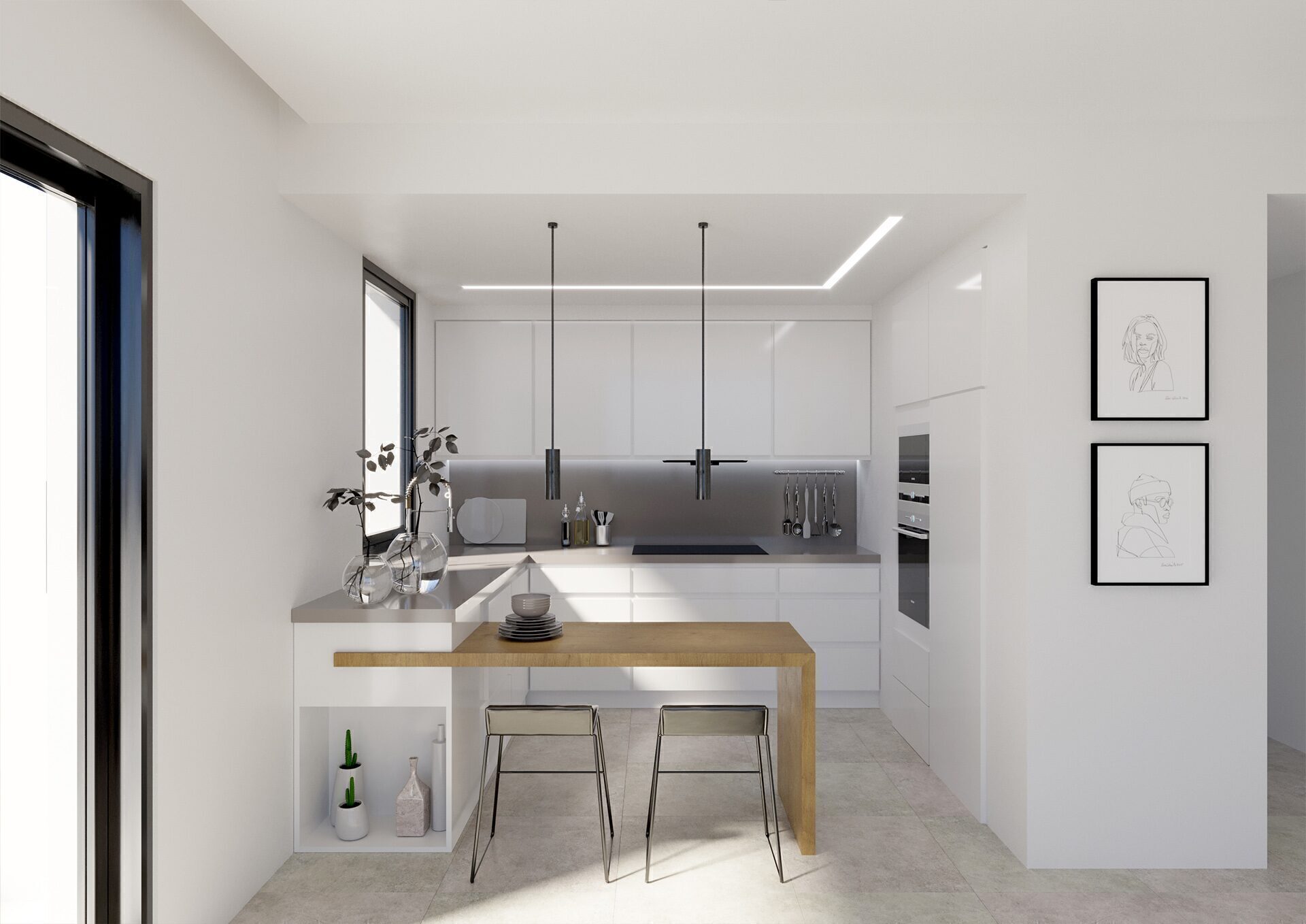 The interior of these homes is designed with a focus on comfort and modern technology. Ceramic and porcelain floors provide an elegant and easy-to-maintain touch. Electric blinds and the home automation system offer complete control over the indoor environment, while air conditioning ensures comfort throughout the year. The kitchens are equipped with state-of-the-art appliances, making daily life easier. Built-in wardrobes provide ample storage space, and the ability to charge electric vehicles in the garage is a plus for electric car owners. Each property includes 2 bathrooms, designed with a contemporary and functional style.