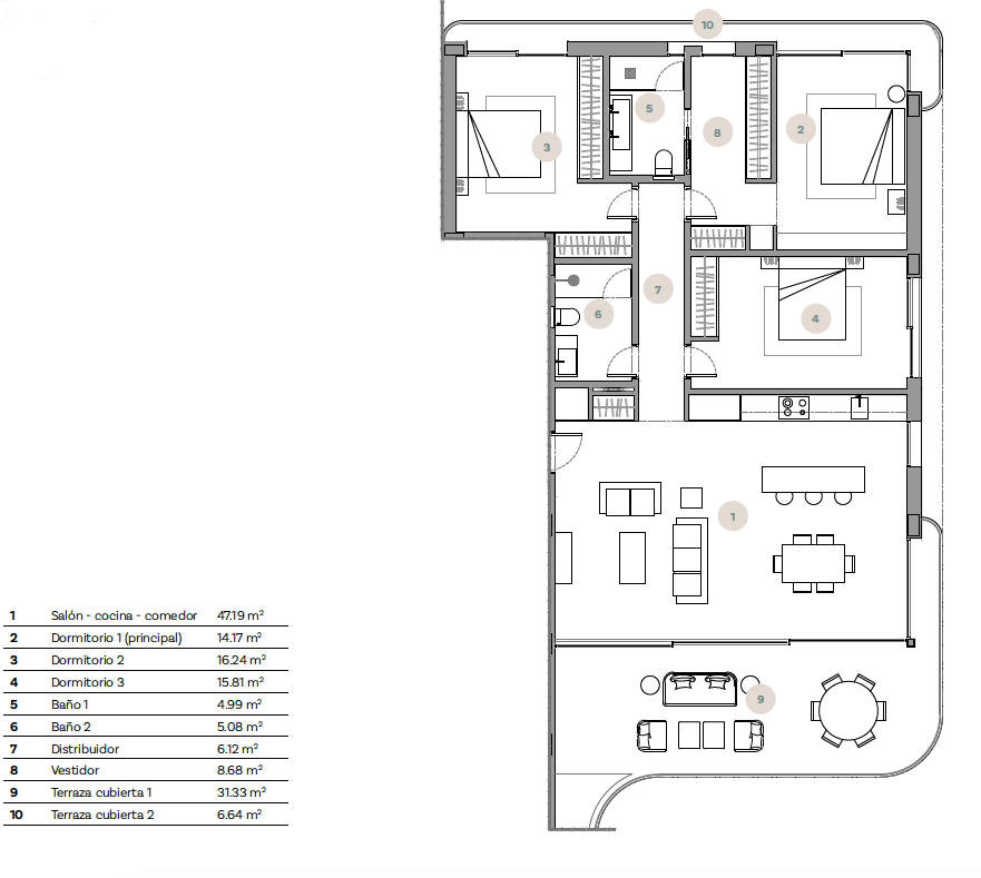 În cele din urmă, sala de sport în aer liber oferă toate instrumentele necesare pentru exerciții în aer liber, precum și diverse zone de recreere care asigură momente de agrement și distracție pentru întreaga familie. În concluzie, acest complex  de apartamente cu 2 și 3 dormitoare cu vedere panoramică în Casares, Málaga oferă nu doar un mod de viață, ci și o experiență holistică și îmbogățitoare, în care natura și confortul merg mână în mână pentru a oferi un stil de viață excepțional.
