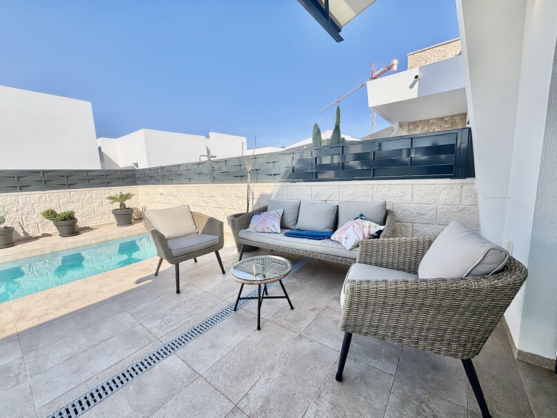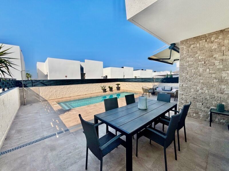 Located in the charming town of Benijófar, this exclusive detached villa offers the perfect combination of comfort and style. With a modern and functional design, this property is ideal for those seeking a home in a quiet yet well-connected location. Proximity to the airport, just 50 km away, facilitates travel, making it an attractive option for both permanent residence and vacations.