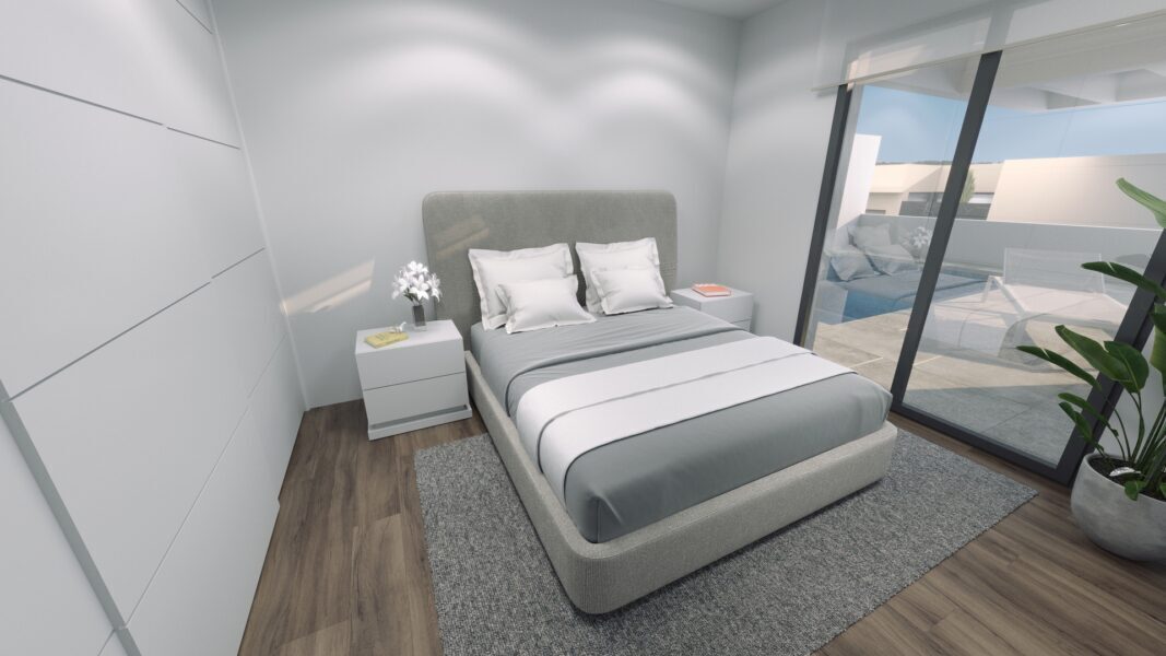 The interiors of these detached homes in Finestrat are designed to offer maximum comfort and functionality. With options of 3 bedrooms and 2 or 3 bathrooms, each home is designed to adapt to the needs of its residents. Porcelain stoneware floors add a modern touch and are easy to maintain. The kitchens are equipped with high-quality appliances, facilitating daily life. Built-in wardrobes provide efficient storage space, maintaining the home’s order and aesthetics. Additionally, each home includes a garage, ensuring convenience and security for vehicles.