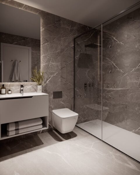 The exteriors of these homes are designed to maximize enjoyment of the Mediterranean climate. Each property features a private garden, ideal for relaxing outdoor moments. Additionally, the terraces offer extra space to enjoy the sea views and natural surroundings. The penthouses have solariums, providing an exclusive space for sunbathing or outdoor dining. The location in Finestrat ensures easy access to the coast, just 3 km away, allowing for beach and water activities at any time.