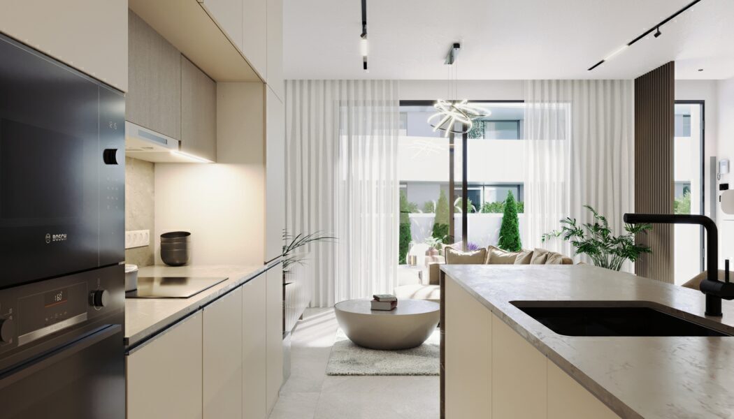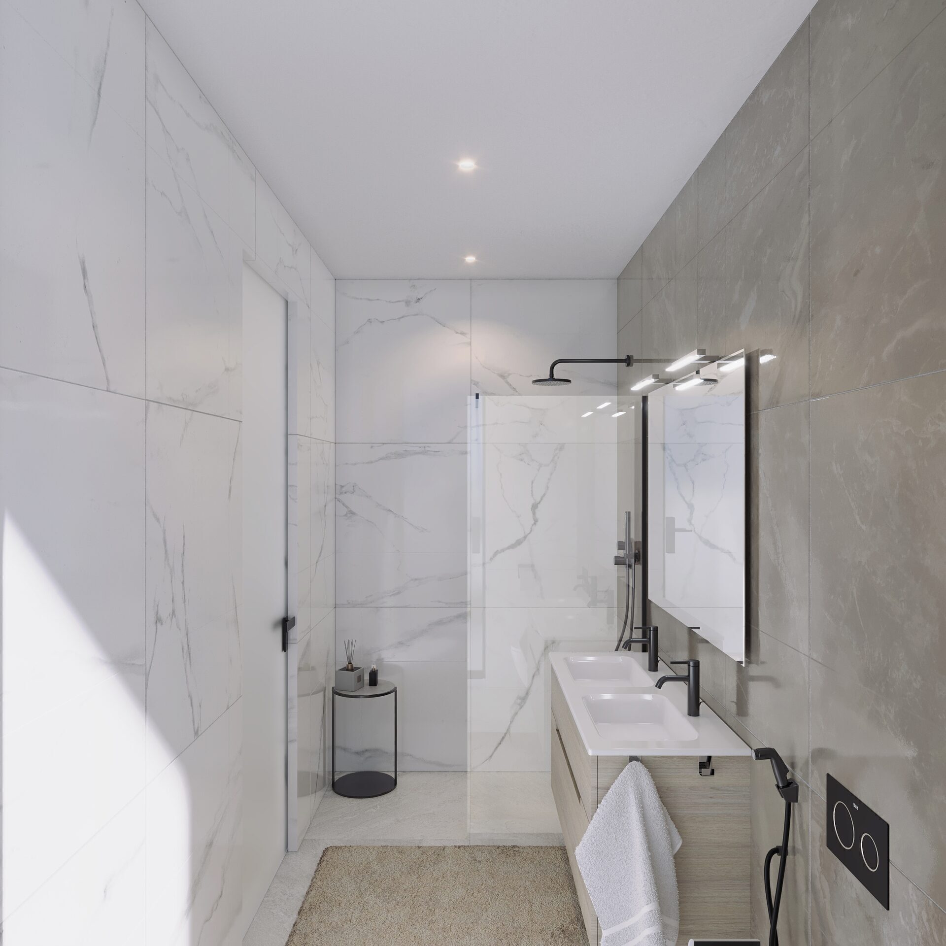 The interior of the townhouses is designed to offer comfort and functionality. With three bedrooms and two bathrooms, each property is designed to maximize space and comfort. Porcelain tile floors add a touch of elegance and are easy to maintain. The inclusion of home automation allows for efficient control of home functions, enhancing security and energy efficiency. Built-in wardrobes in the bedrooms offer practical and discreet storage. Additionally, each townhouse features a solarium, a perfect space to relax and enjoy the views.