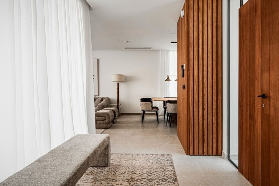 The interiors of the villas are designed with a focus on comfort and modernity. Porcelain stoneware floors add a touch of elegance and are easy to maintain. The villas are equipped with high-quality appliances, ensuring that each kitchen is ready for use from day one. Integrated home automation allows efficient control of various home functions, while electric shutters and a video intercom add an extra level of security and convenience. Built-in wardrobes in the bedrooms offer ample storage space, maintaining order and organization.