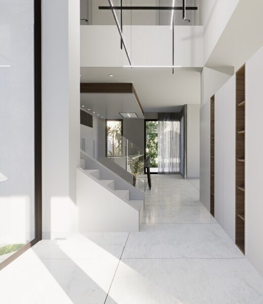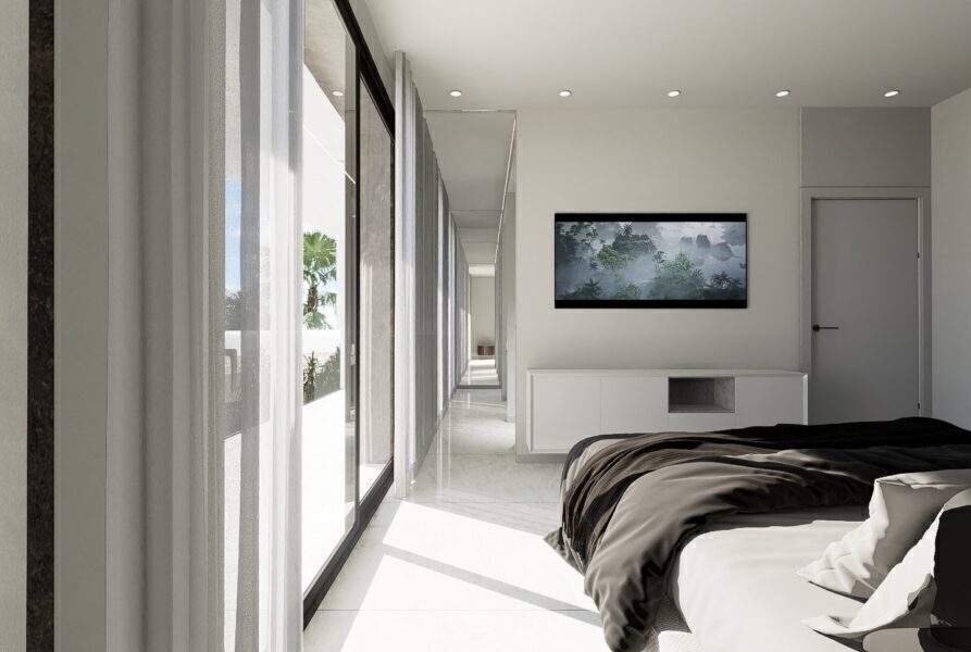 The interior of the villa is designed with a focus on comfort and functionality. Porcelain stoneware floors add a touch of elegance and are easy to maintain, ideal for a modern home. The villa is equipped with air conditioning, ensuring a pleasant environment throughout the year. Built-in wardrobes in the bedrooms offer ample storage space, maintaining order and organization. With 4 bedrooms and 5 bathrooms, each family member can enjoy their own private space, while the common areas are designed to foster togetherness and enjoyment of the home.