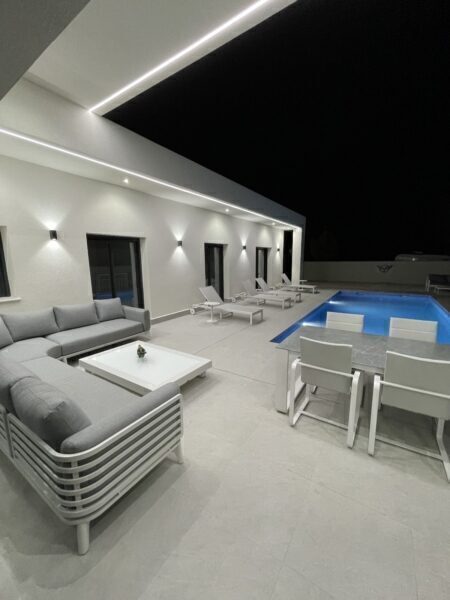 The exterior of this detached villa in La Romana is designed to fully enjoy the Mediterranean climate. The property features a private garden, perfect for creating a personal oasis of tranquility or enjoying outdoor activities. Additionally, it has a terrace that offers extra space for relaxation or entertaining guests. One of the main attractions is the private pool, providing an ideal place to cool off during hot summer days and enjoy unforgettable moments with family or friends.