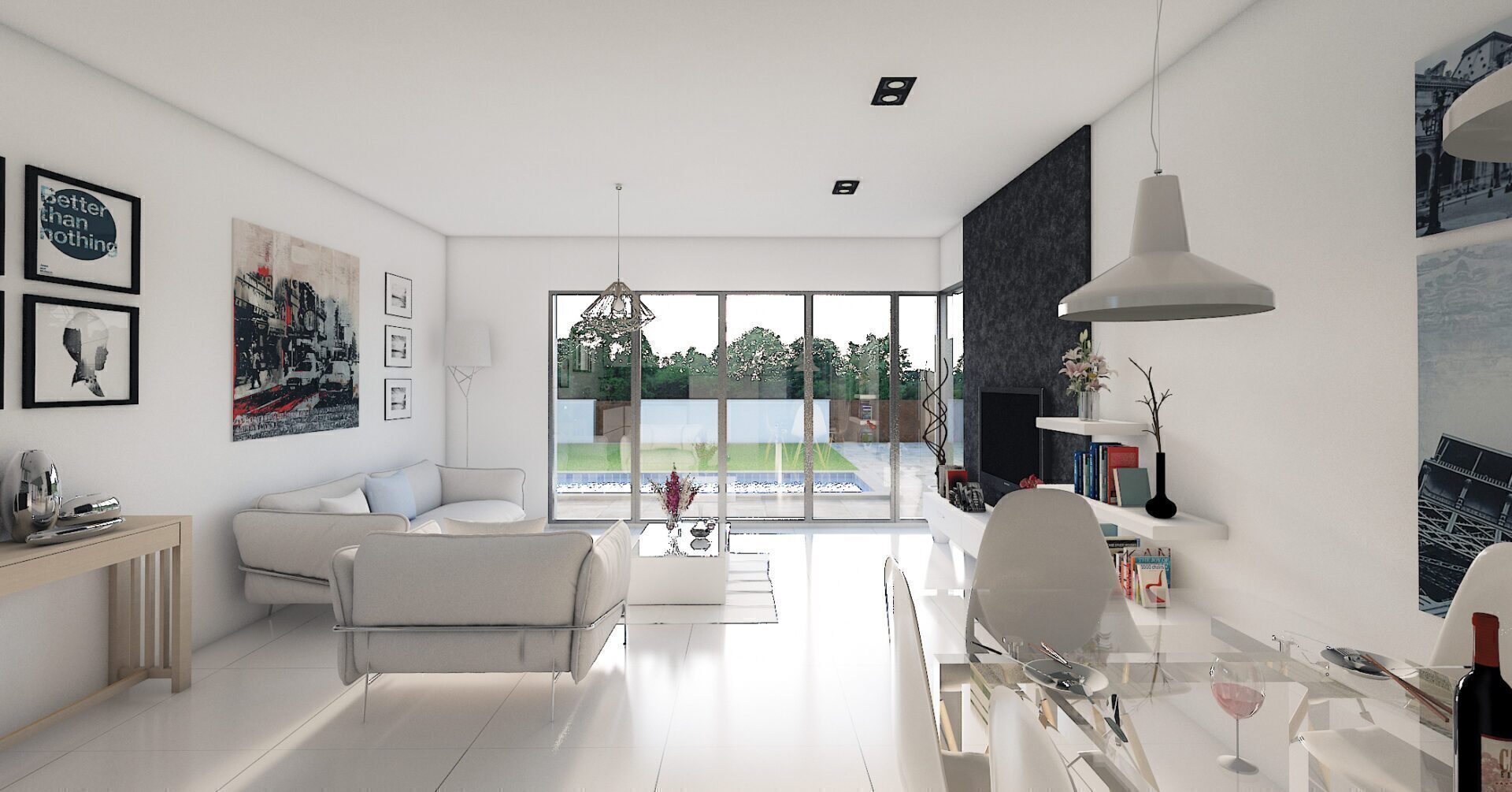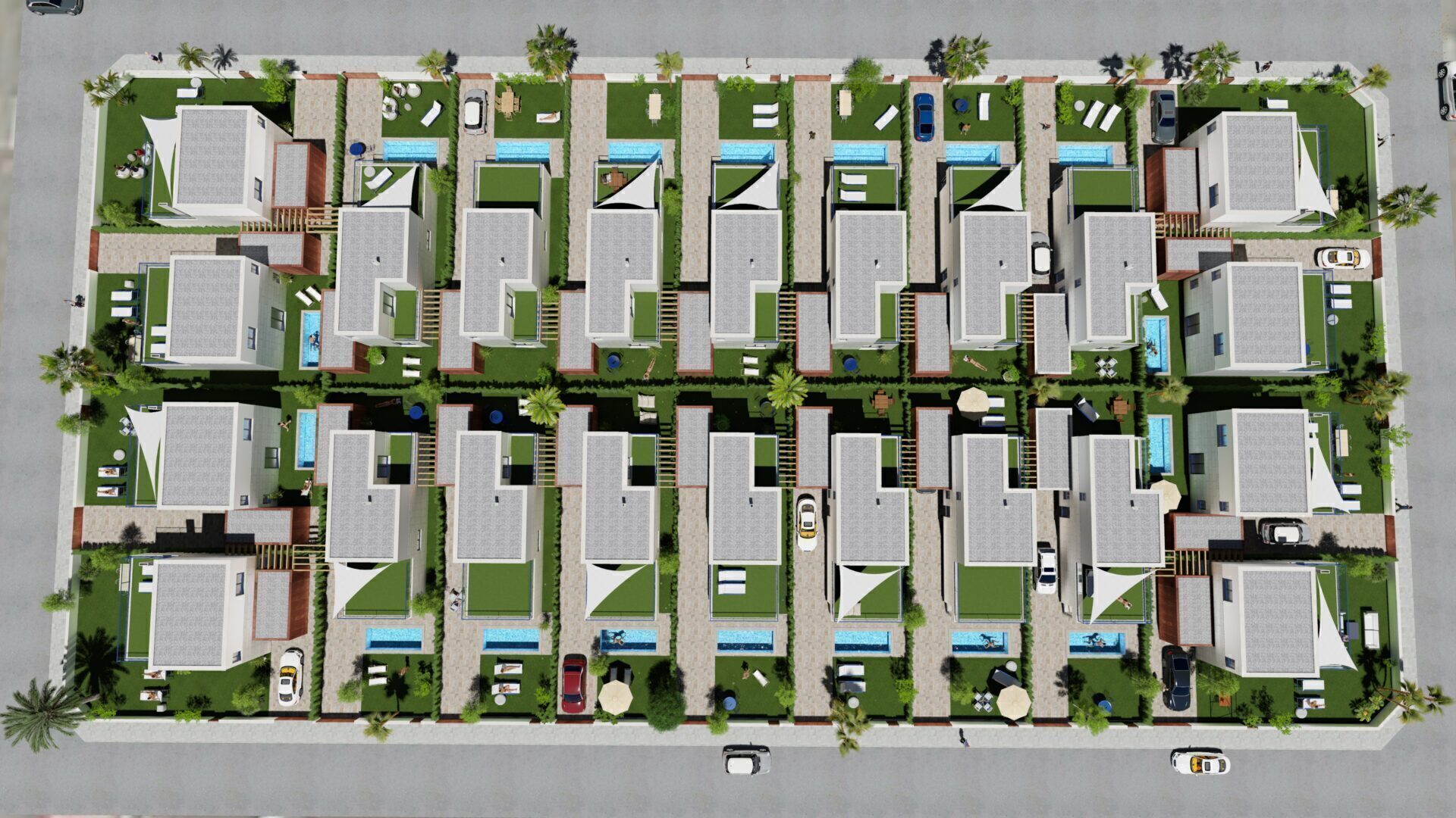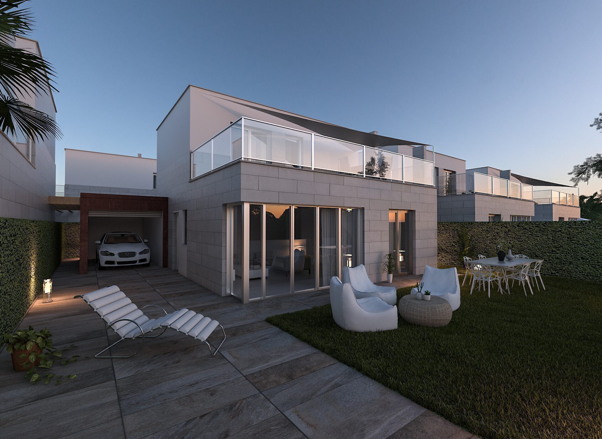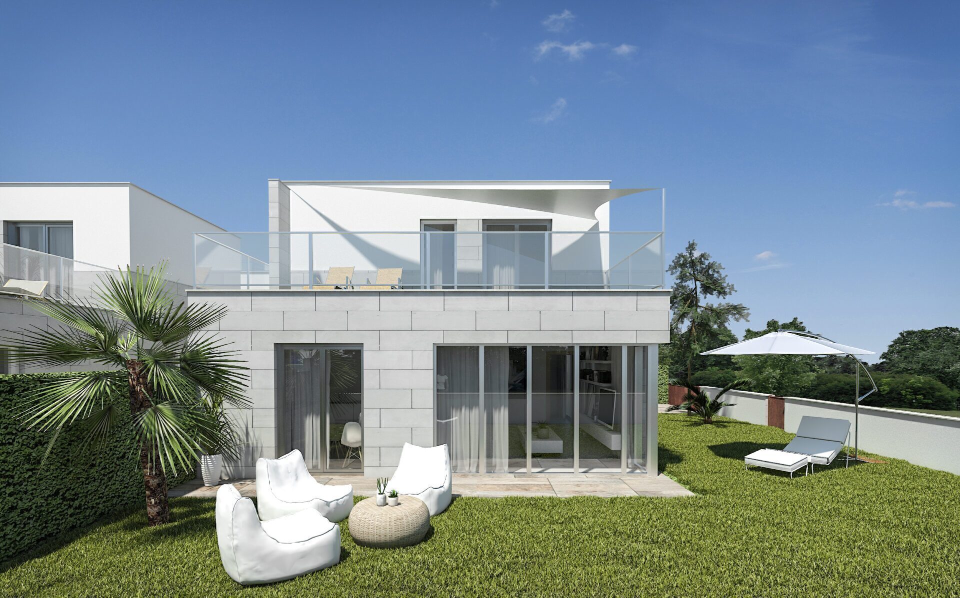 The exterior design of these detached homes in Los Alcázares focuses on integration with the natural environment and providing outdoor spaces that maximize enjoyment of the Mediterranean climate. Each property features a private garden, perfect for creating a personal oasis of tranquility or for enjoying outdoor gatherings. The terrace, an essential element in these homes, offers additional space for relaxation or dining al fresco, while the solarium provides an ideal spot for sunbathing in complete privacy. Proximity to the sea, just 1 km away, allows for unobstructed views and the enjoyment of the sea breeze, making the outdoors a perfect place for rest and leisure.