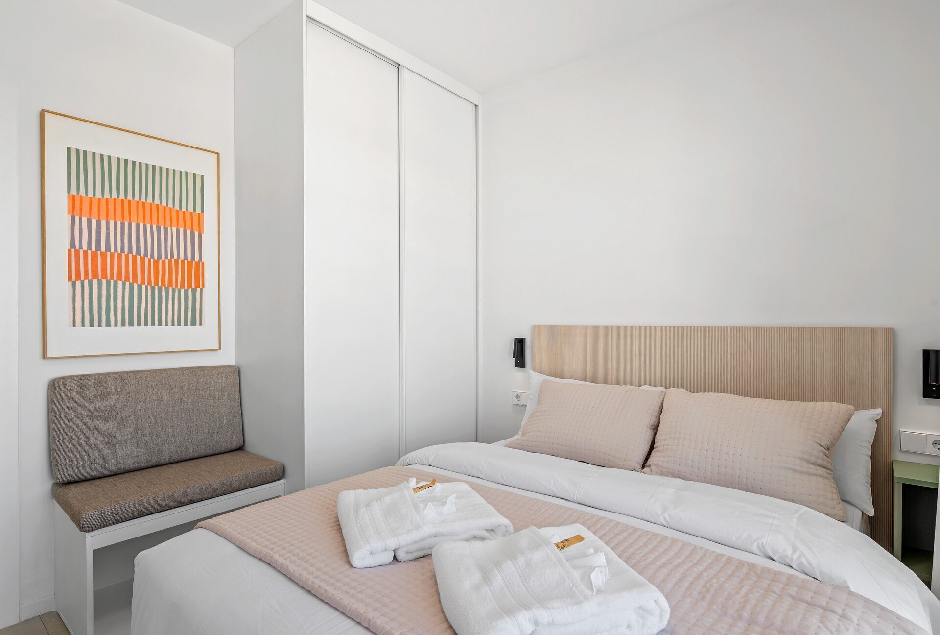 The interiors of the apartments and penthouses are designed to offer maximum comfort. All properties are fully furnished, ready to move in. Porcelain tile floors add a touch of elegance and durability, while electric blinds and the video intercom provide an extra level of convenience and security. Built-in wardrobes optimize storage space, maintaining order and functionality in every room. With three bedrooms and two bathrooms, each home is designed to meet the needs of families or couples seeking a spacious and well-distributed space.