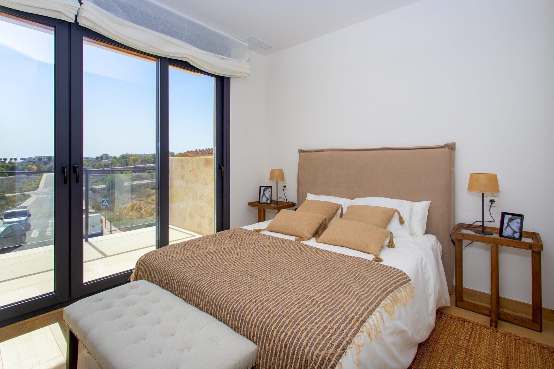 The interior of the townhouses is designed with a focus on comfort and modernity. The homes are fully furnished, ready for move-in. Ceramic and porcelain tile floors provide an elegant touch and are easy to maintain. Electric blinds and air conditioning ensure a comfortable environment year-round. Additionally, built-in wardrobes optimize storage space. The pre-installation of air conditioning offers the possibility to customize the climate system according to each resident’s needs.