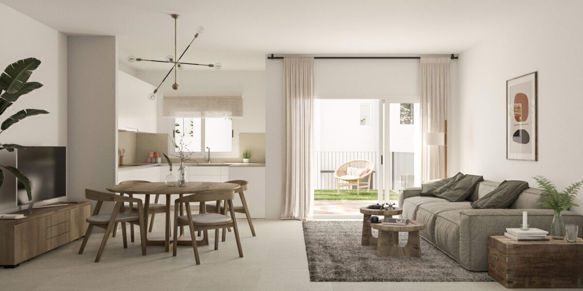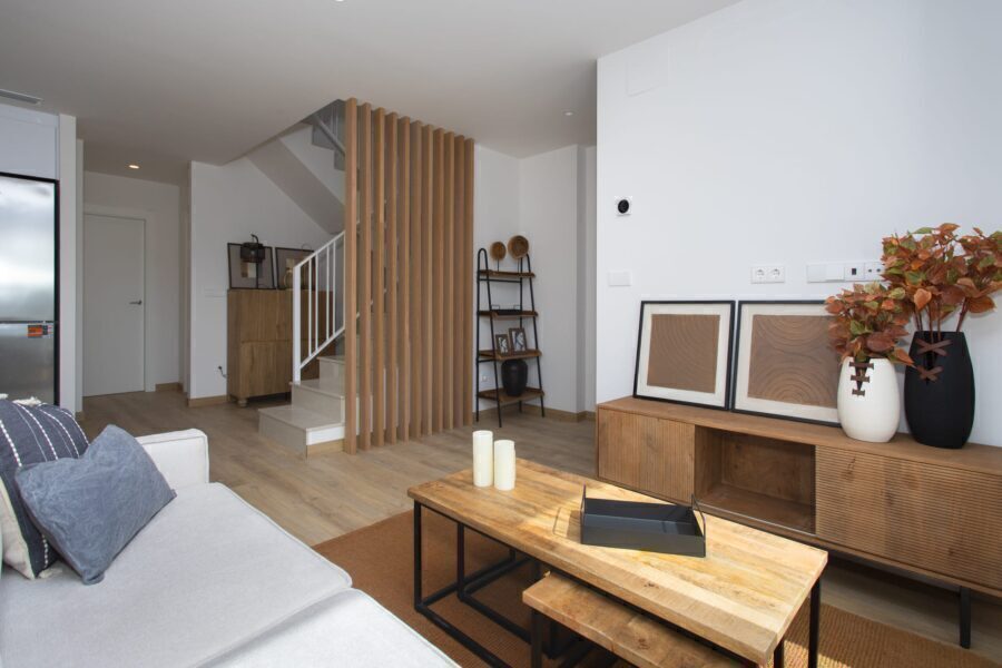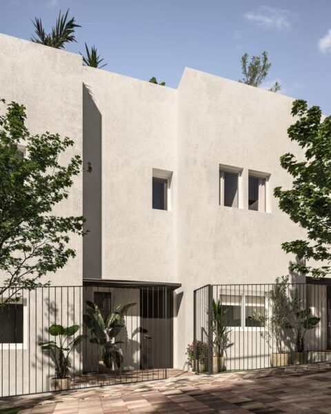 The exteriors of these townhouses are designed to enjoy the Mediterranean climate. Each home features a private terrace, perfect for outdoor relaxation. Additionally, there is a solarium, ideal for sunbathing in the privacy of your home. The presence of a private pool in each townhouse adds a touch of exclusivity, allowing for a refreshing swim at any time of the day. The communal gardens complement the setting, offering a green space for walking or enjoying outdoor activities.