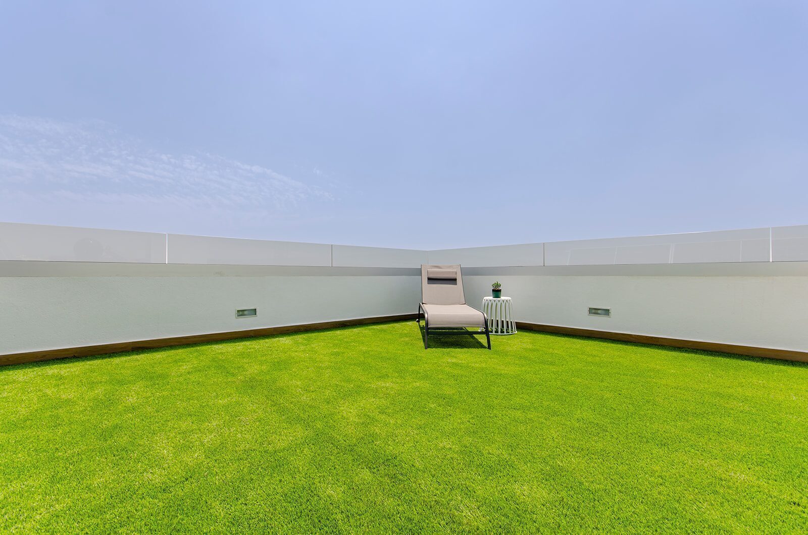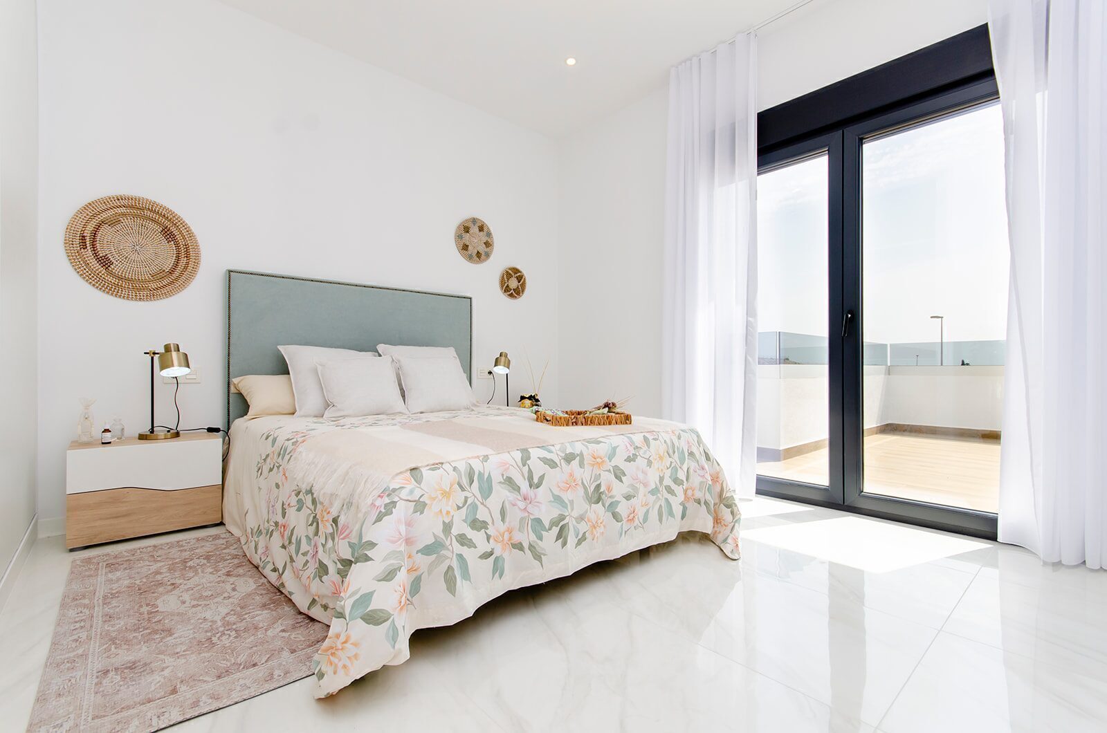 The interior of these homes in Orihuela is designed with a focus on comfort and functionality. Ceramic floors add a modern touch and are easy to maintain. The homes come fully furnished, making moving in easy and allowing enjoyment of the new home from day one. The kitchen is equipped with high-quality appliances, and the built-in wardrobes in the bedrooms offer ample storage space. The air conditioning system, along with additional pre-installation, ensures a pleasant environment throughout the year. Electric blinds and the video intercom add an extra level of comfort and security.