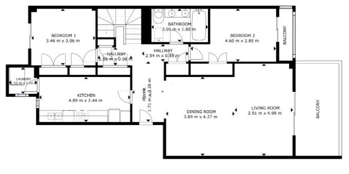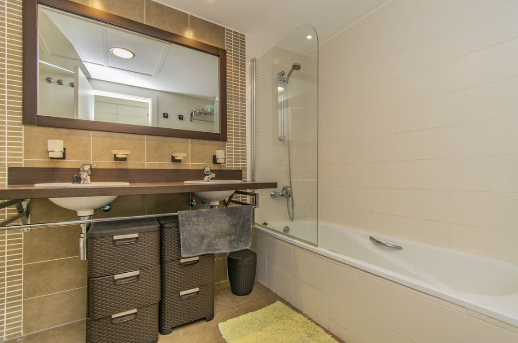 Penthouse-ul duplex are un design funcțional și elegant, distribuit pe două etaje. La parter, există două dormitoare confortabile, ideale pentru intimitate și relaxare. Fiecare dormitor are un sistem eficient de aer condiționat și dulapuri încorporate, oferind confort și funcționalitate. Acest etaj include, de asemenea, două băi decorate cu finisaje de înaltă calitate, oferind o atmosferă contemporană și confortabilă.