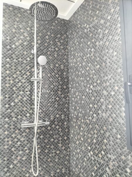 The interiors of these detached homes are designed to offer maximum comfort and functionality. Each property features three bedrooms and two bathrooms, providing a spacious and comfortable area for the whole family. Porcelain tile floors add a touch of elegance and are easy to maintain. The homes are equipped with underfloor heating, ensuring a warm environment during the colder months. Electric shutters and built-in wardrobes are standard features that add convenience and practicality to daily life. Additionally, each home includes a garage, offering a secure space for parking.