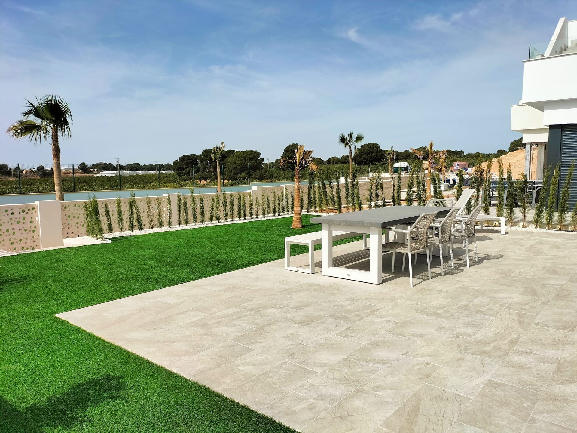 The exterior design of these detached homes in Pilar de la Horadada is stunning, focusing on integration with the natural surroundings. Each property features a private garden, ideal for enjoying the Mediterranean climate. Additionally, the homes have a terrace and a solarium, perfect for relaxing and enjoying the views. The inclusion of a private pool in each home adds a touch of luxury, allowing residents to enjoy a refreshing swim in the comfort of their home. The proximity to the golf course, just 0.8 km away, offers a unique opportunity to enjoy this sport in a spectacular setting.