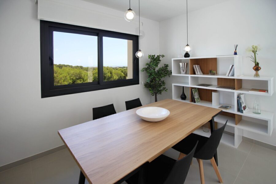 Located in the charming setting of Pinar de Campoverde, this residential complex offers a selection of 20 properties including Apartments, ground-floor, and Penthouses. The location is ideal for those seeking a balance between tranquility and accessibility, with the airport just 46 km away. The homes are designed to offer comfort and functionality, with options of 2 and 3 bedrooms, and 2 bathrooms, catering to various family needs. The pre-installation of air conditioning ensures a pleasant environment throughout the year, while the porcelain tile flooring adds a touch of elegance and durability to each space.