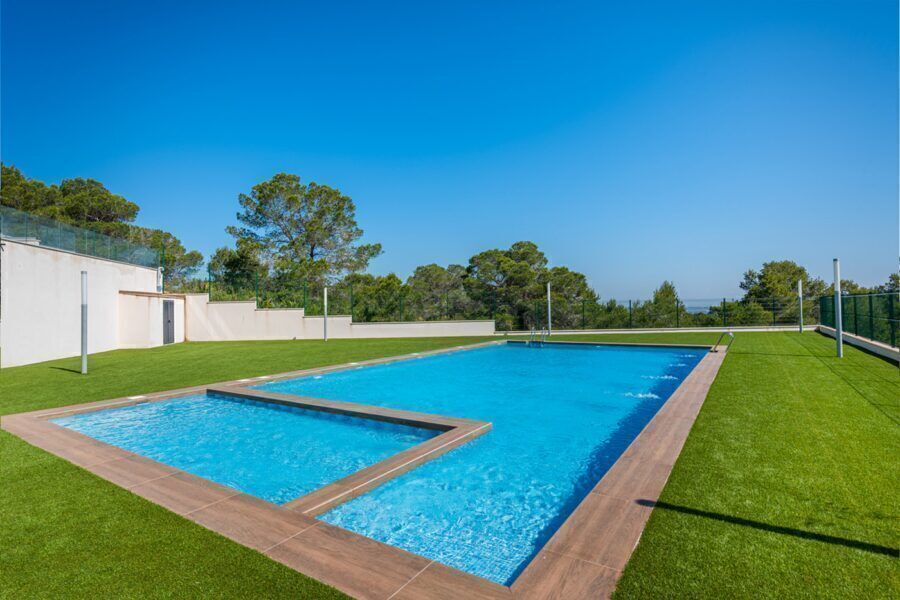The outdoor areas of these properties are designed to maximize enjoyment of the Mediterranean climate. Each bungalow features a private garden, ideal for creating a personal green space or enjoying outdoor activities. The terraces offer a perfect place to relax and enjoy the surrounding views. Additionally, residents have the option to enjoy a solarium, an additional space that allows for maximum sun exposure throughout the year. For those looking to cool off, some bungalows include a private pool, providing a personal oasis of tranquility and fun.