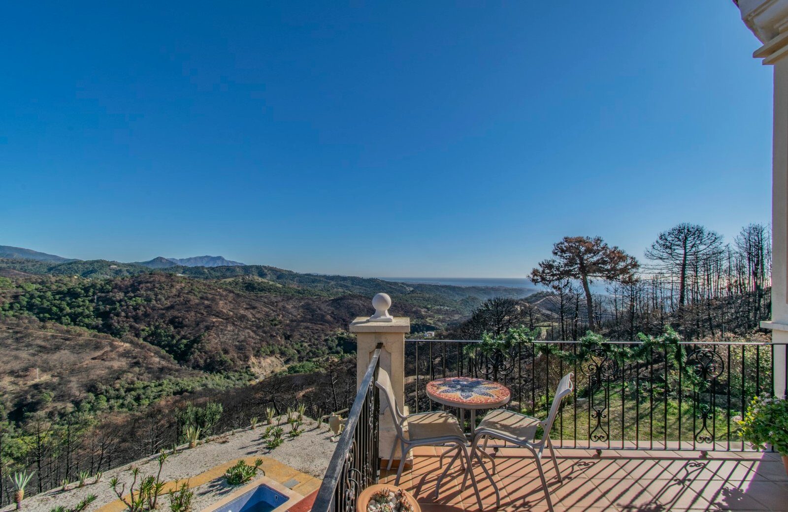 Cu vederi frumoase la mare și la munte, această proprietate de lux oferă echilibrul perfect între lux, confort și frumusețea piestră. Vila este situată într-un cadru natural la doar câteva minute de mers cu mașina de Estepona și este întinsă pe mai multe etaje. Cu un total de șase dormitoare, patru băi, un living-sufragerie mare cu bucătărie separată, o sală de jocuri, garaj, terase și un solar, această proprietate este ideală pentru cei care caută un loc de odihnă și distracție.