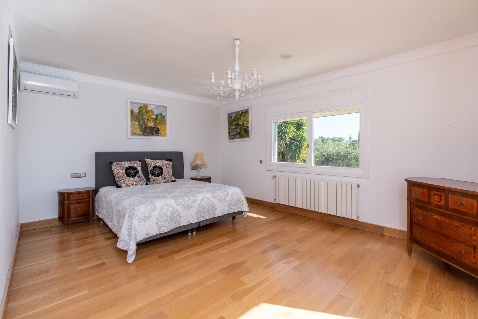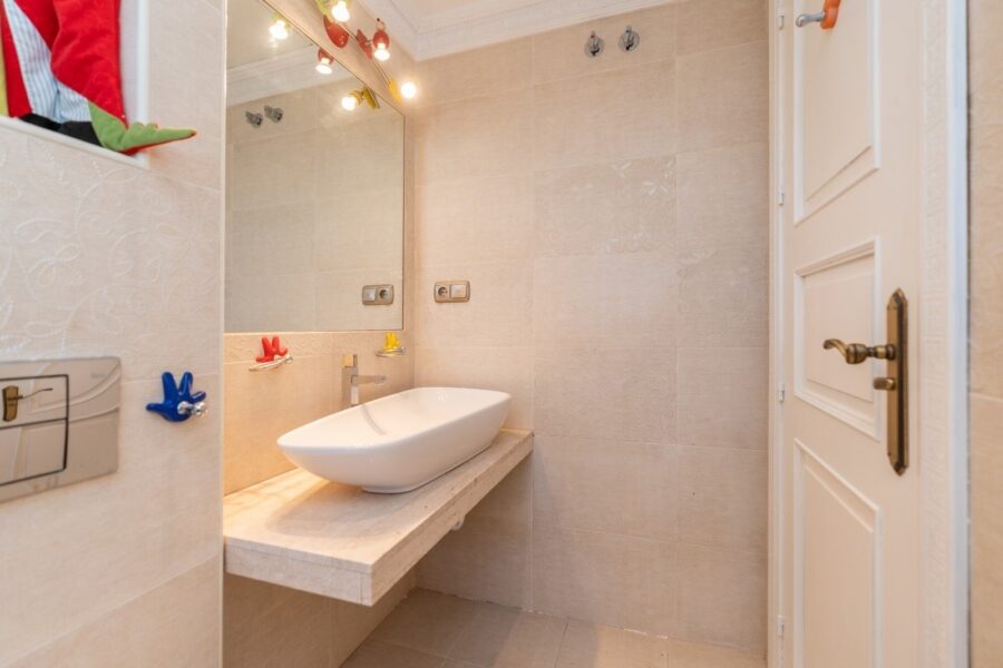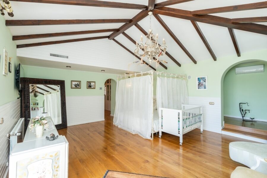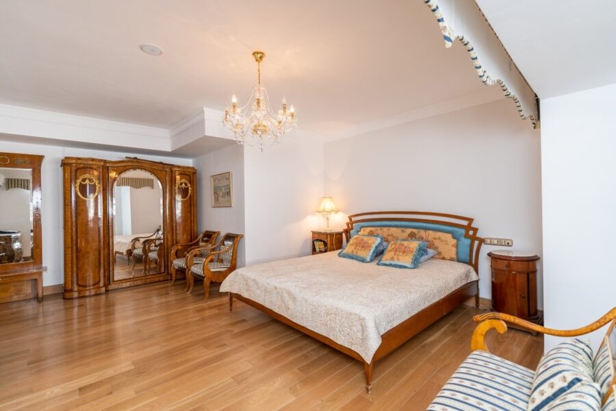 Urcând la etajul superior, veți găsi impresionantul dormitor matrimonial, care se remarcă prin spațialitate și eleganță. Acest spațiu dispune de o baie imensă care vă invită să vă relaxați și să vă relaxați, precum și de o terasă privată mare de pe care vă puteți bucura de vederi panoramice ale mării. Acest dormitor devine un refugiu personal unde poți contempla frumusețea naturală a împrejurimilor într-o atmosferă exclusivistă.