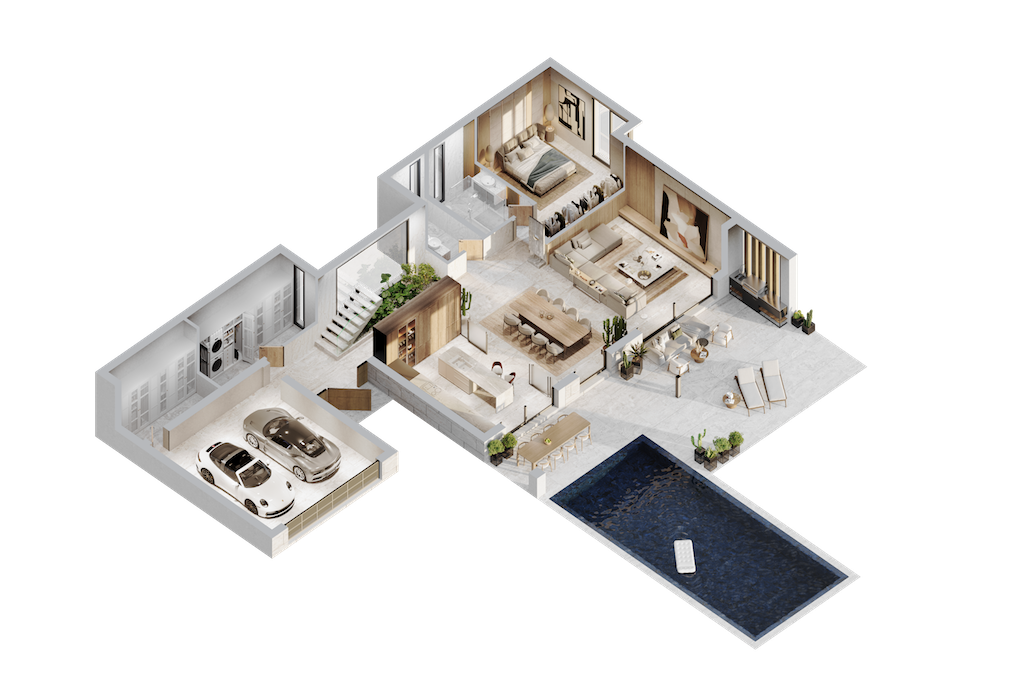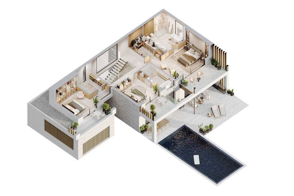 Vile elegante cu 4 dormitoare în Bel Air, fiecare vilă având dimensiuni și amenajări diferite, fiind proiectate cu atenție pentru a oferi intimitate, confort și siguranță maxime, garantând o experiență de locuire excepțională.