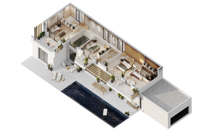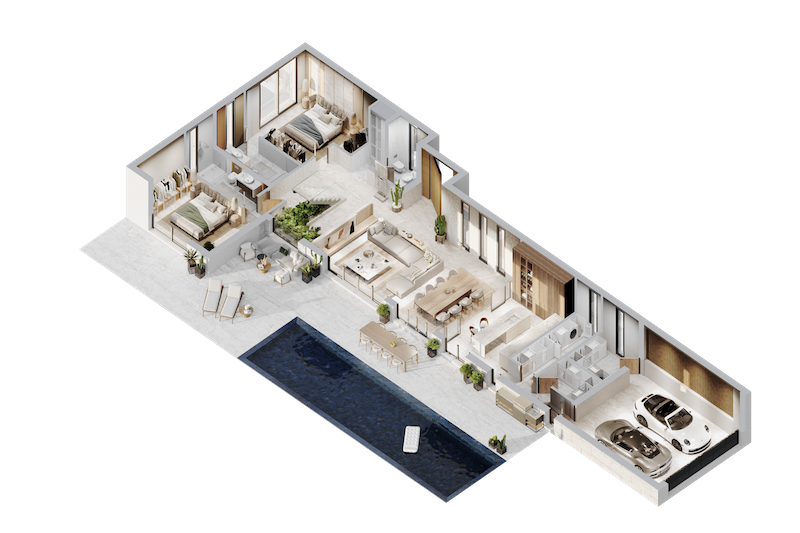 Vile elegante cu 5 dormitoare în Bel Air, fiecare vilă având dimensiuni și amenajări diferite, fiind proiectate cu atenție pentru a oferi intimitate, confort și siguranță maxime, garantând o experiență de locuire excepțională.